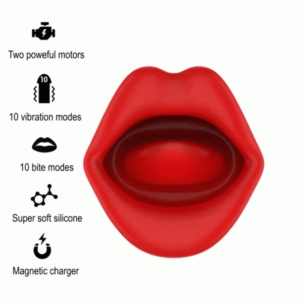 Descubre el arte de la seducción con este estimulador que combina a la perfección diseño vanguardista y tecnología de vanguardia. Suma emoción a tus momentos íntimos y deja que la pasión florezca con cada mordida y vibración de este cautivador juguete en forma de boca.